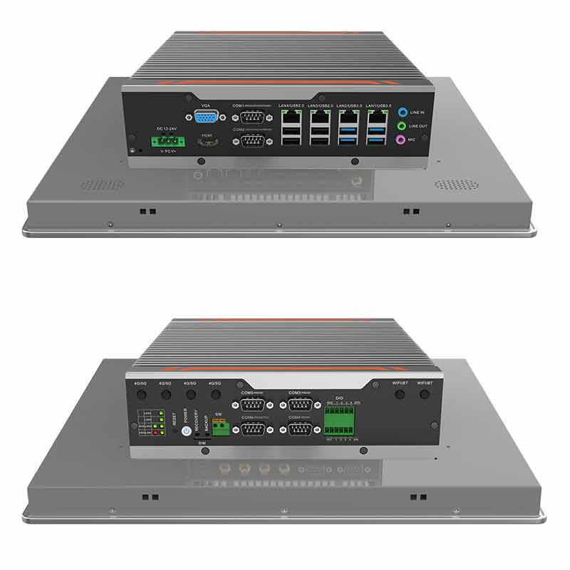 接口豐富: 4*LAN(Intel),6*COM,8*GPIO(4*GPI,4*GPO),4*USB3.0+4*USB2.0,1*VGA,1*HDMI,1*遠程開關,1*一鍵還原,1*一鍵備份,1*SIM槽,1*LINE IN,1*LINE OUT,1*MIC,1*2.5寸硬盤位,1*M.2(KEY-M,2280,SATA SDD),1*M.2(KEY-B,3042/3052,USB3.0信號 支持4G/5G模塊),1*MINI PCIE(全高,PCIE+USB2信號,支持WiFi/BT)